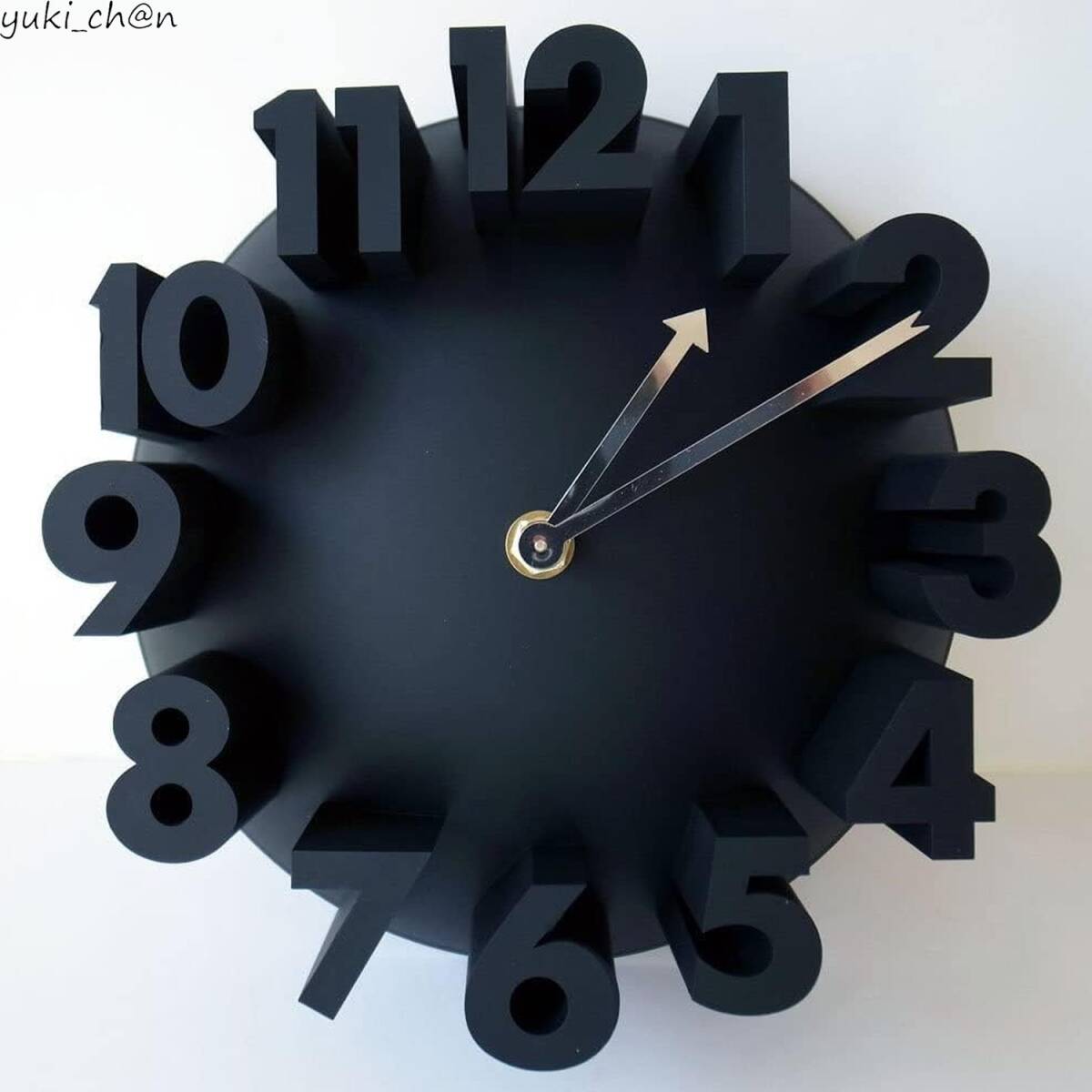 - 立体時計 ブラック 22x8.5cm ラウンドウォールクロック アート 3D ナンバー 壁掛け時計 アナログ デザイン壁掛け時計