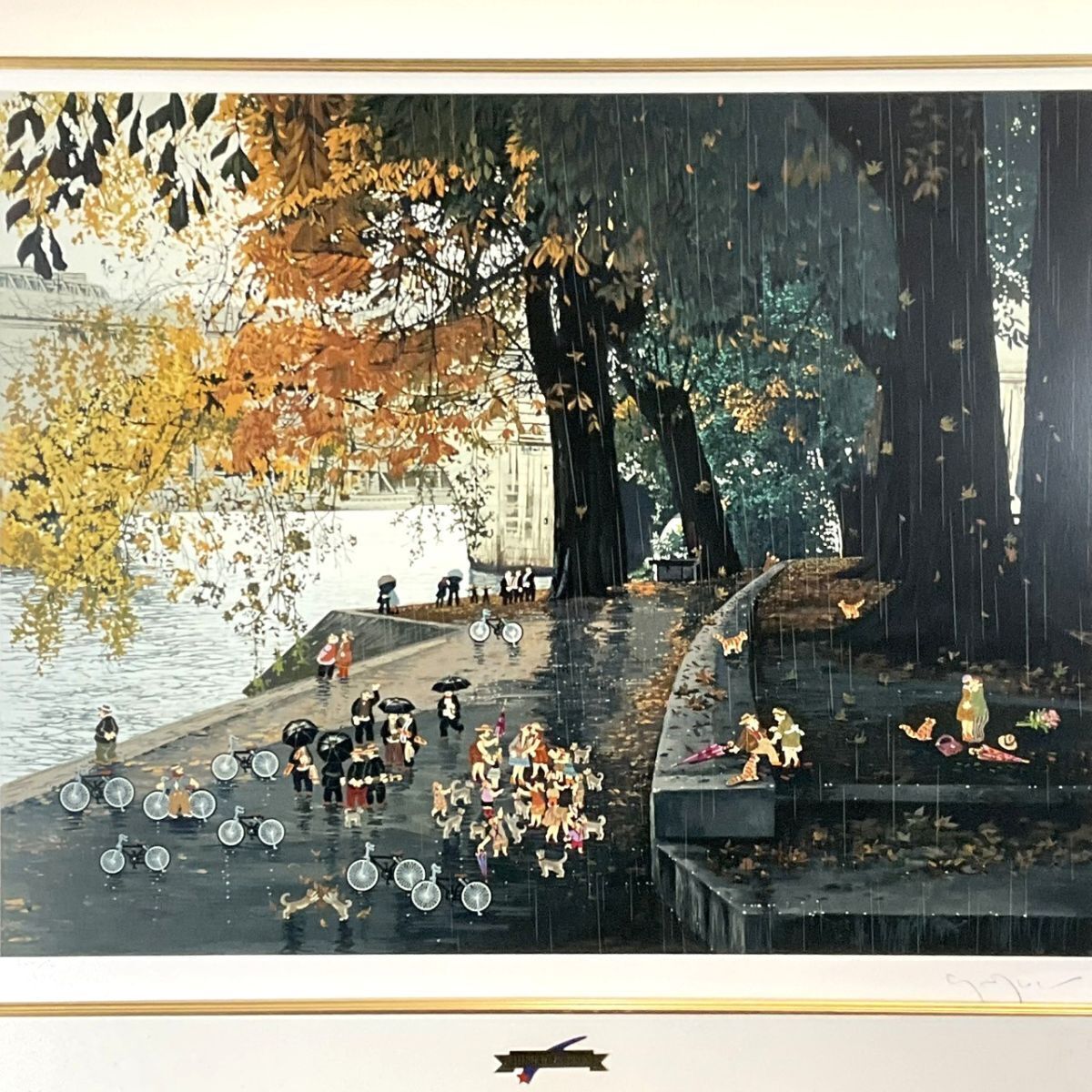 真作■シルクスクリーン■ヒロ・ヤマガタ■『セーヌ川にて』■世界的人気メルヘン作家■証明書■額付絵画 7拍卖
