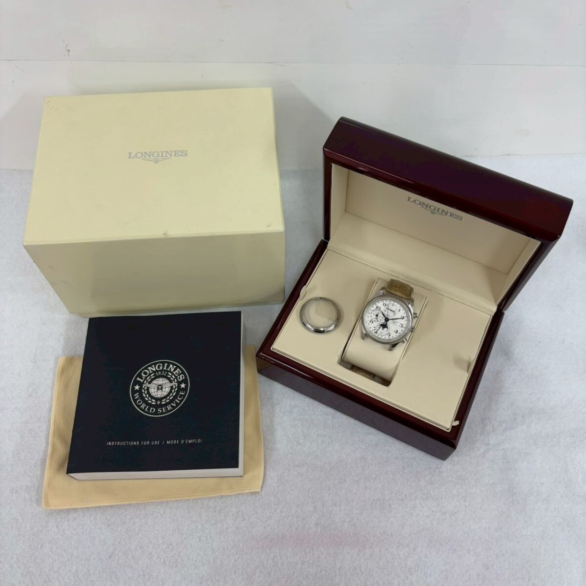 > E417-D1-2199 LONGINES ロンジン マスターコレクション L2.673.4 自動巻 クロノグラフ ムーンフェイズ 裏スケ メンズ 腕時計 箱付 稼動 OA