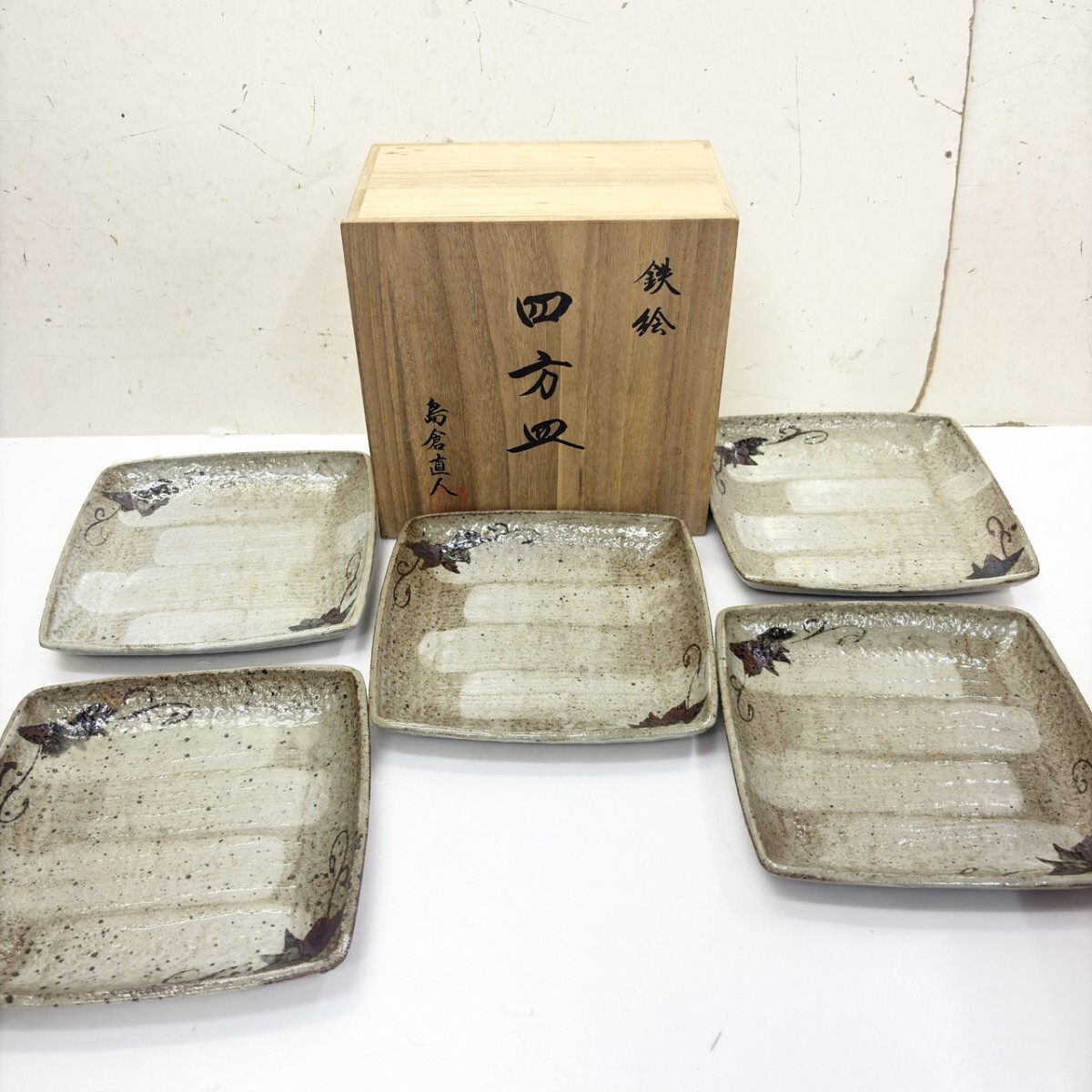- 未使用 珠山窯 島倉直人 鉄絵 四方皿!