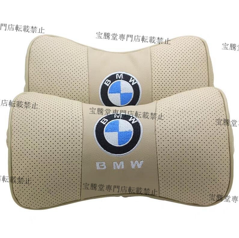 - ★新品★2個セット★BMW★ 刺繍 ロゴ入りき レザー ネックパッド 汎用 車載首枕 ヘッドレスト★刺繍工芸★ベージュ