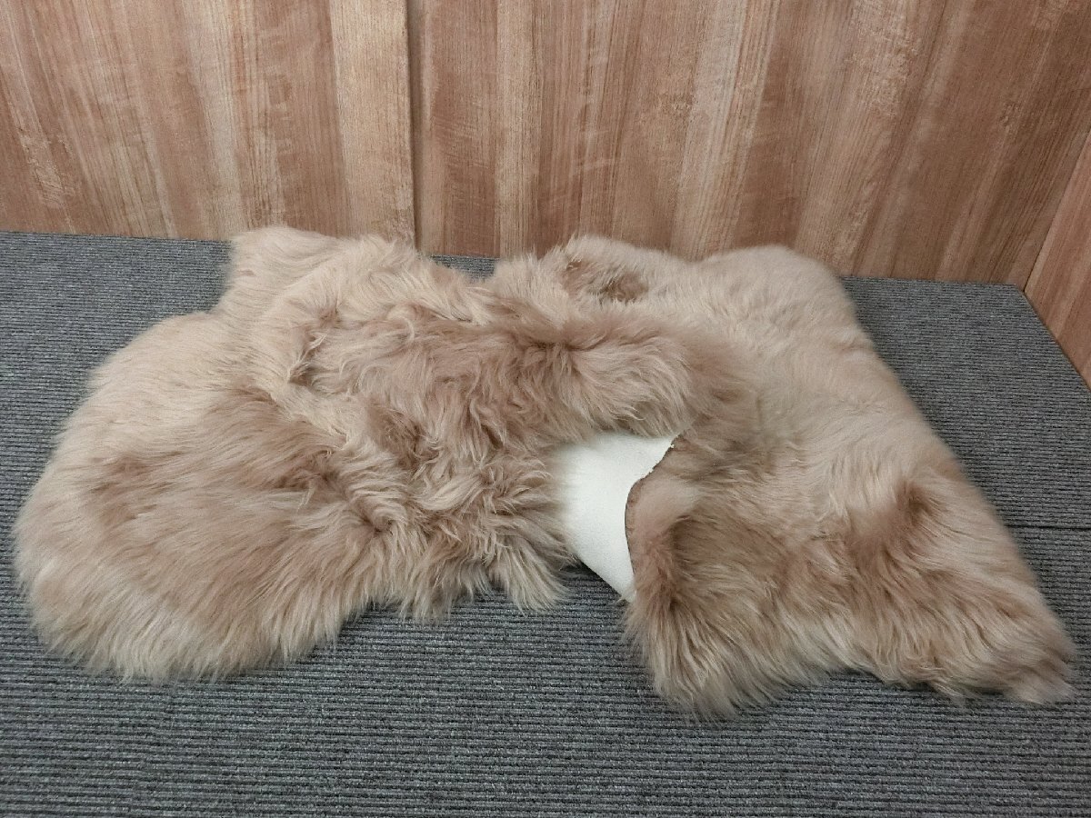 > GY220-36)丸八真綿/ムートンラグ/ブラウン/60×120cm/1.5匹/毛足長さ5cm/天然毛皮/新品/