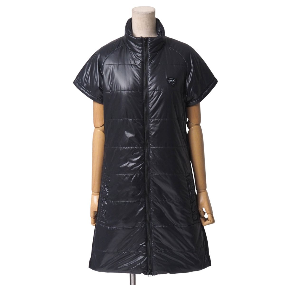 > TI9047☆ティゴラ TIGORA GOLF 中綿 ワンピース Aライン ダブルジップジャケット 半袖 スタンドカラー ナイロン ネイビー Lサイズ