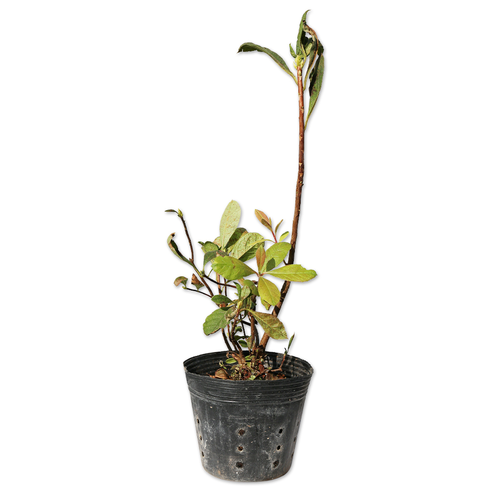 【商品情報】ムラサキヤシオツツジは1~2mになる落葉低木です。福井県以東・北海道に自生しています。葉は薄く、枝先に集まって輪生します。花は葉より先に枝先に集まって咲きます。濃紅紫色で5裂し、花柄には腺毛があります。幹は分枝し、細めです。豪雪地帯に分布しますが、自生数は少ないです。山地~亜高山帯に自生しています。