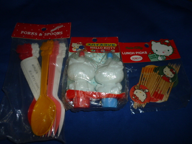 - レトロ 80年代 未使用 サンリオ キティ フォーク スプーンセット・スパスコンビ・ランチピックス