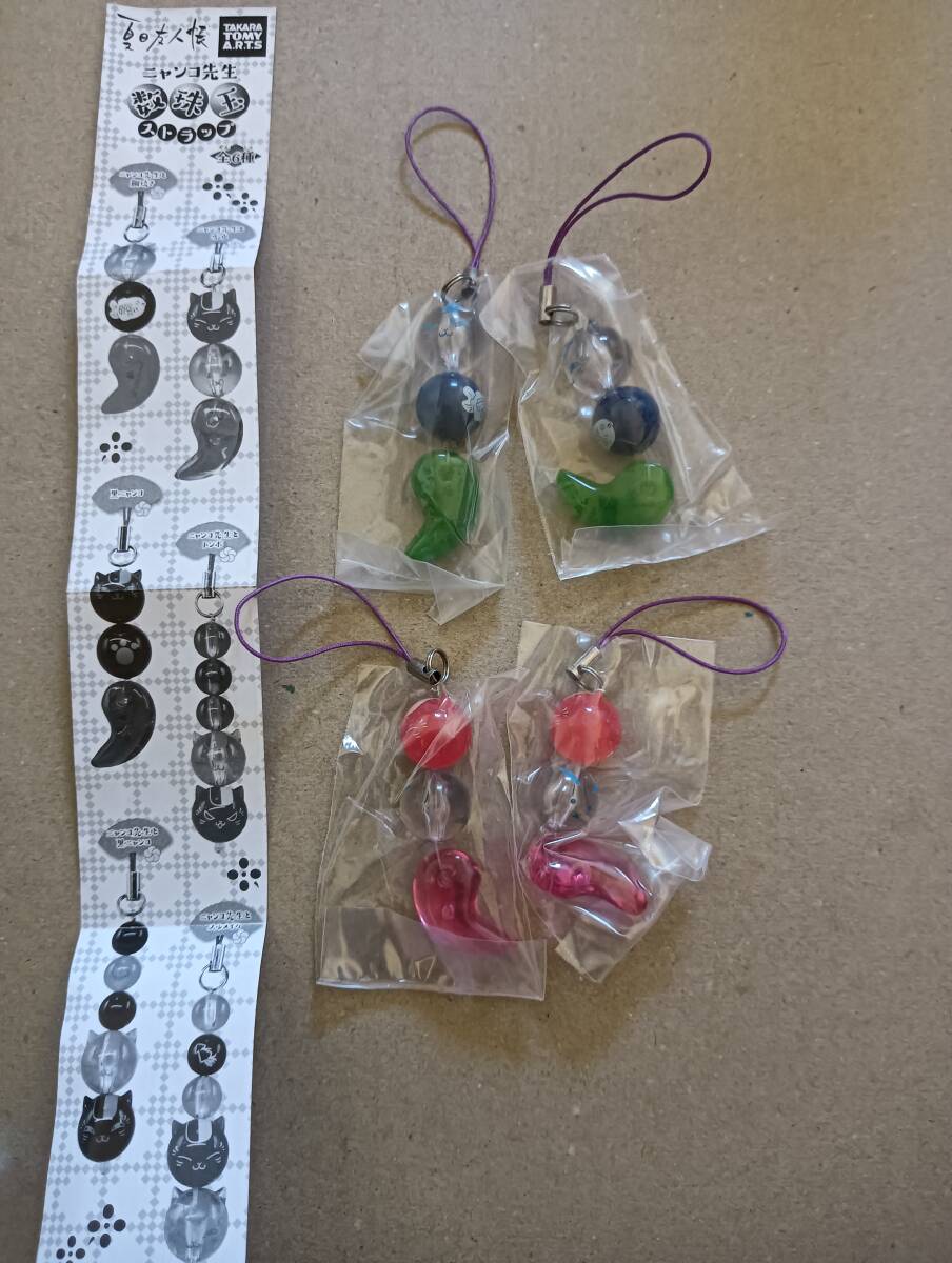 - 【新品未開封】夏目友人帳 ニャンコ先生 数珠玉ストラップ 2種 4個 セット タカラトミー ガチャ たい焼き 雪兎