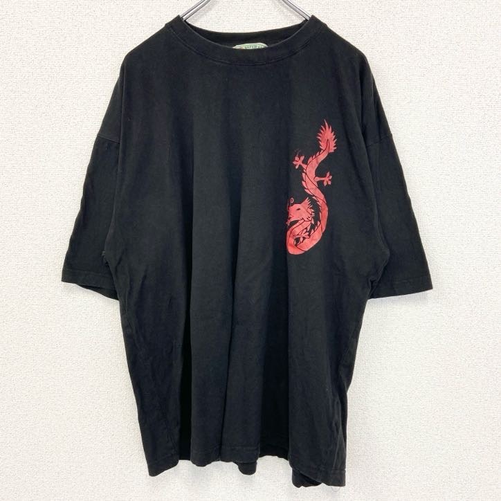 > 古着 used NATIONAL OPTION 半袖プリントTシャツ ドラゴン 龍 レトロ 春夏服 黒 クルーネック XLサイズ
