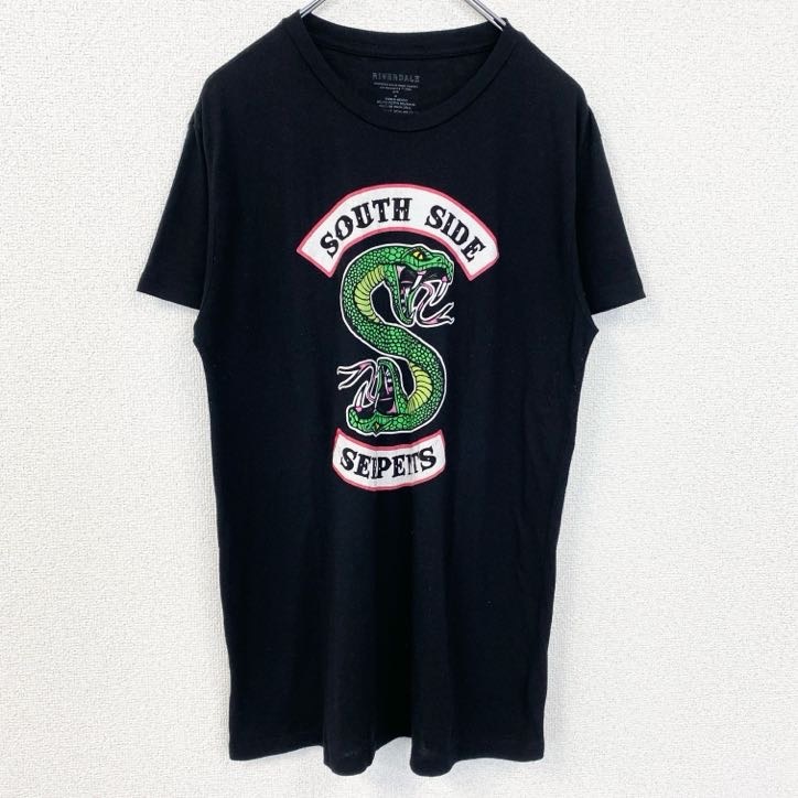 > 古着 used メキシコ製 RIVERDALE 半袖プリントTシャツ サウスサイドサーペント 蛇 黒 ブラック Mサイズ