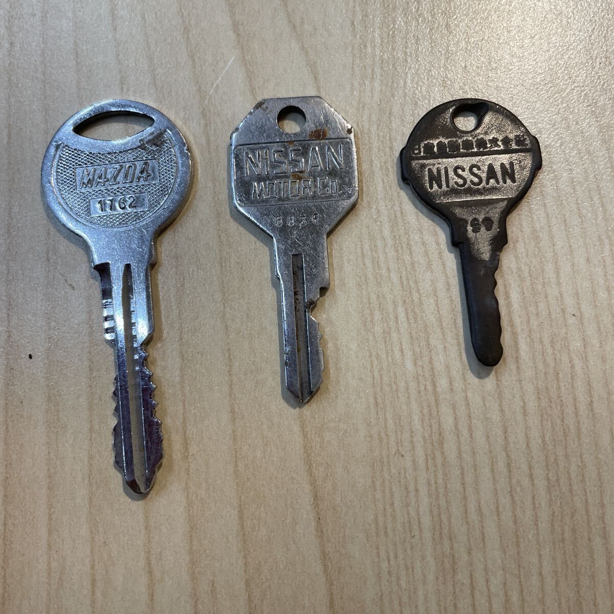 - MAZDA/マツダ 1本 NISSAN/ニッサン 2本 旧車 鍵 キー 当時もの レトロ アンティーク 昭和 古い