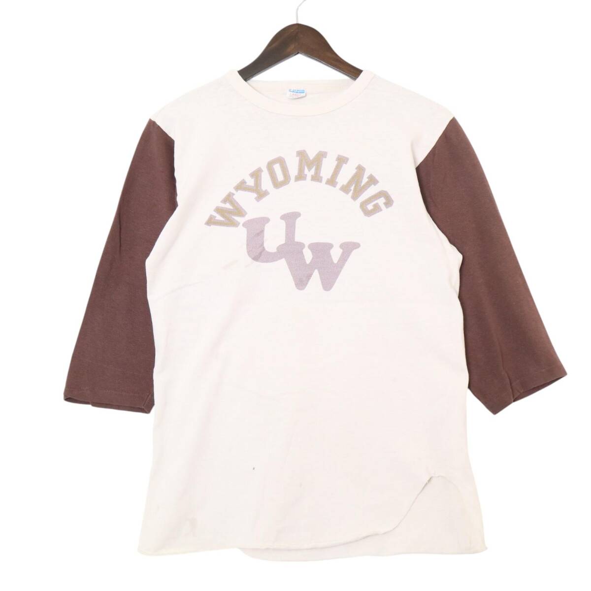 - 70年代 Champion チャンピオン ベースボール Tシャツ ワイオミング 大学 ヴィンテージ バータグ ホワイト(メンズ L)中古 古着 A4277