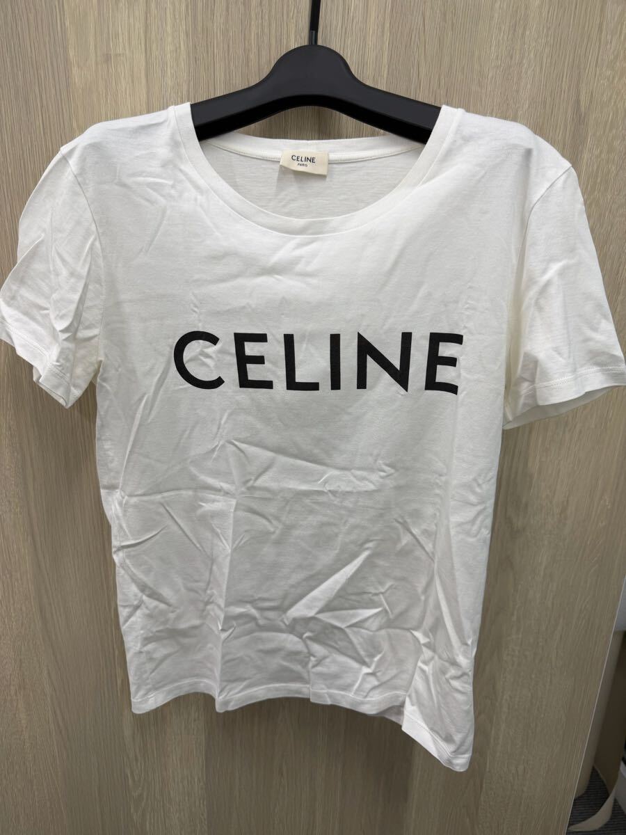 > 【美品】CELINE セリーヌ ロゴTシャツ XS ホワイト コットン 半袖 レディース 現状品 プレミアム パリ発ブランド