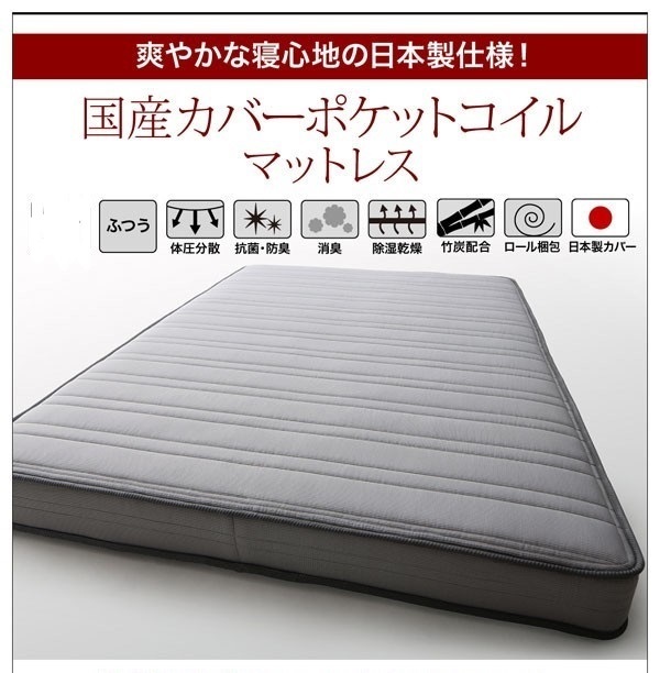 - 未使用訳あり 真空圧縮ロールでお届け 国産カバーポケットコイルマットレス キング K グレー