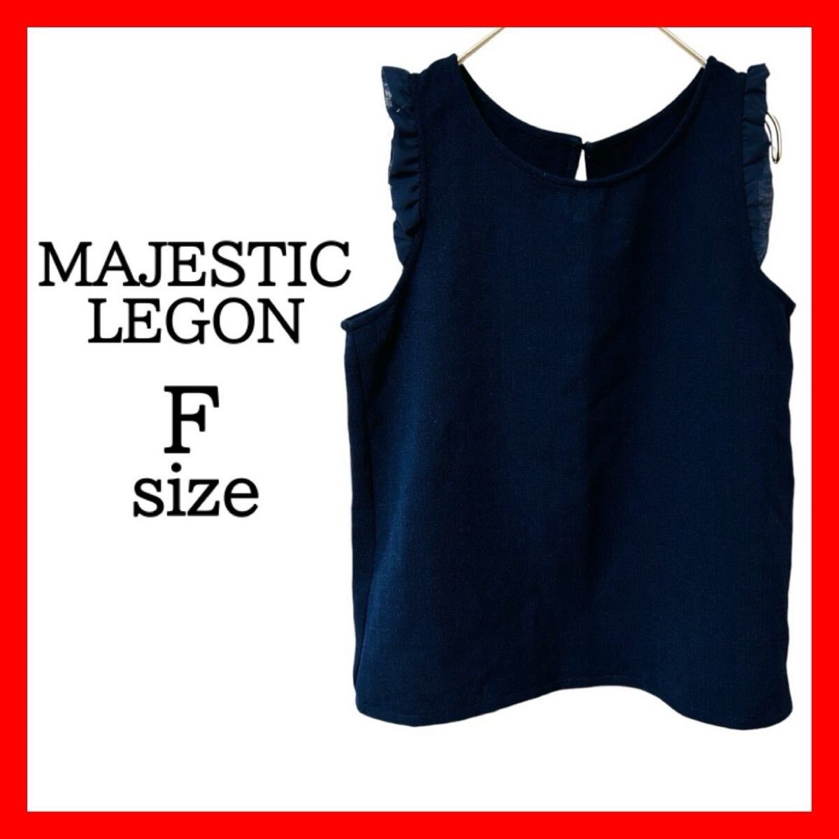 > 【500円~スタート】【MAJESTIC LEGON】フリーサイズ ネイビー フリルスリーブ ノースリーブ シンプル おしゃれ カジュアル フォーマル