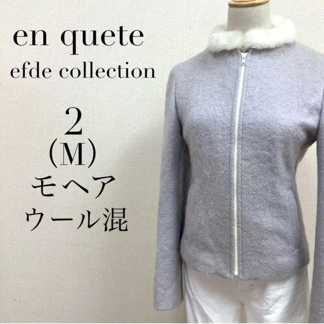 - T アンケート ノーカラージャケット フルジップ ファー付 取り外し可 モヘアウール混 グレー 2M