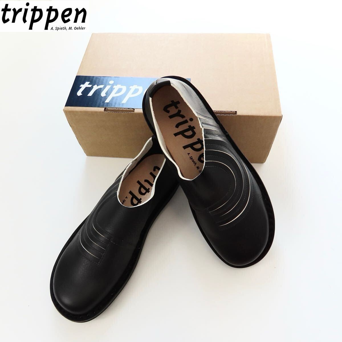 > 未使用 箱付き trippen RAINBOW m トリッペン レインボー 43 27〜27.5cm ブラック系 レザースリッポン サイドゴム 甲ゴム スリッポン 革靴