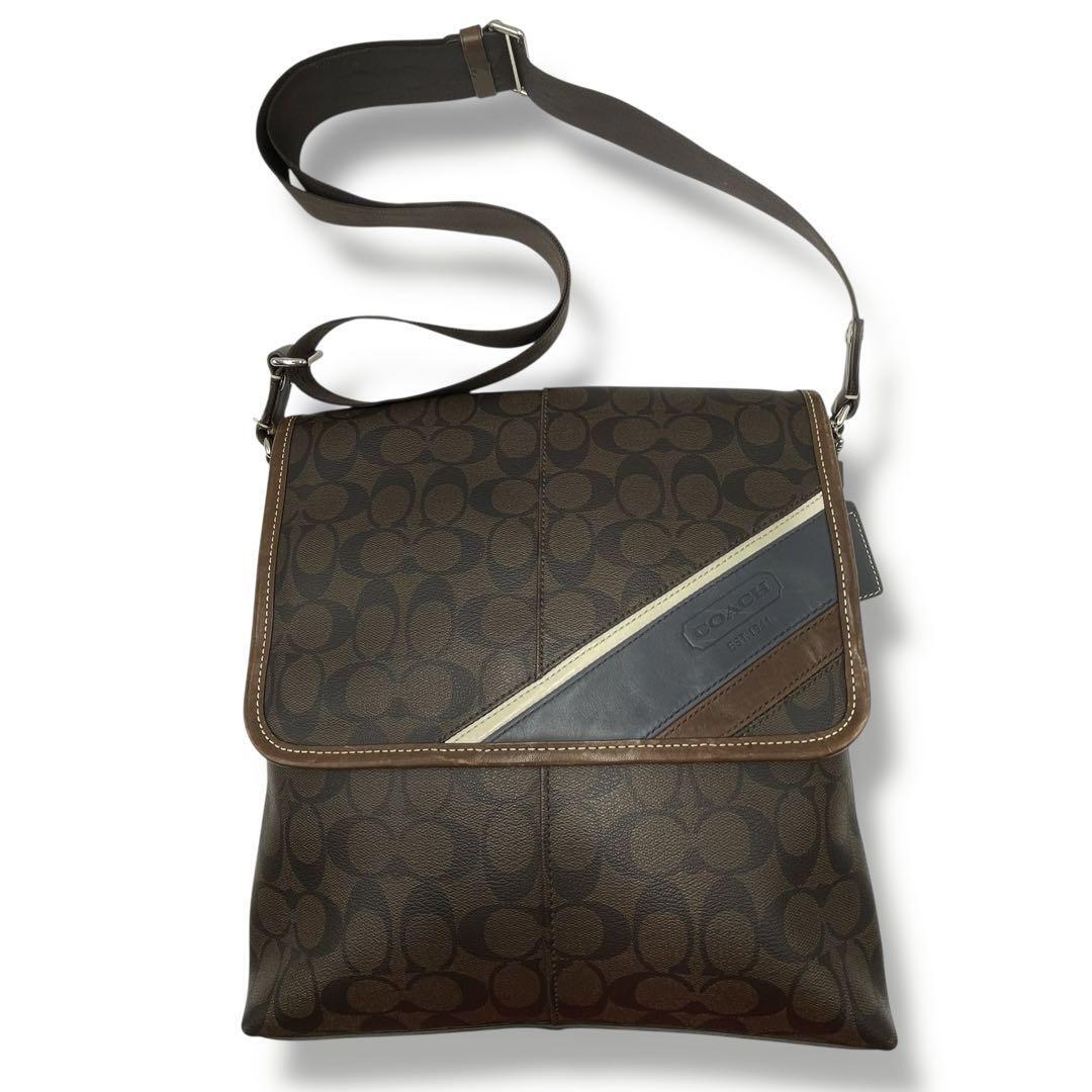 - 美品 COACH コーチ メッセンジャー ショルダーPVC ヘリテージ ストライプ