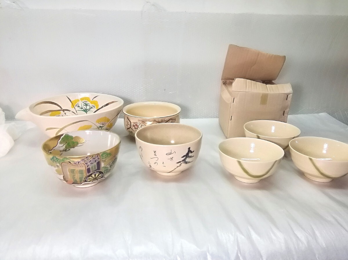 - 茶道具 その他 京焼 作家 抹茶碗 松寿 景山 注ぎ口付き 鉢 金彩 色絵 茶碗 光山 まとめて 陶器 食器