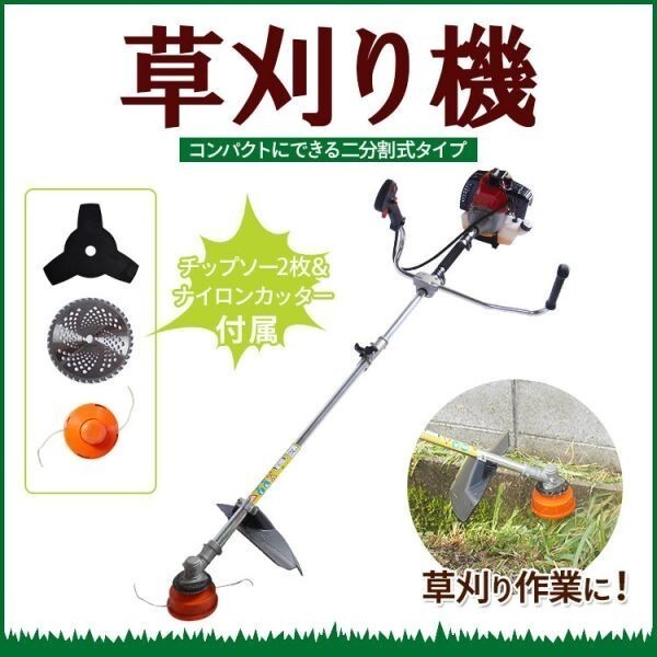 - 草刈り機 高性能 草刈機 刈払機 エンジン ガソリン 2分割式 ナイロン刃 金属刃付属 チップソー2枚diy 伐採 草 剪定 zk113