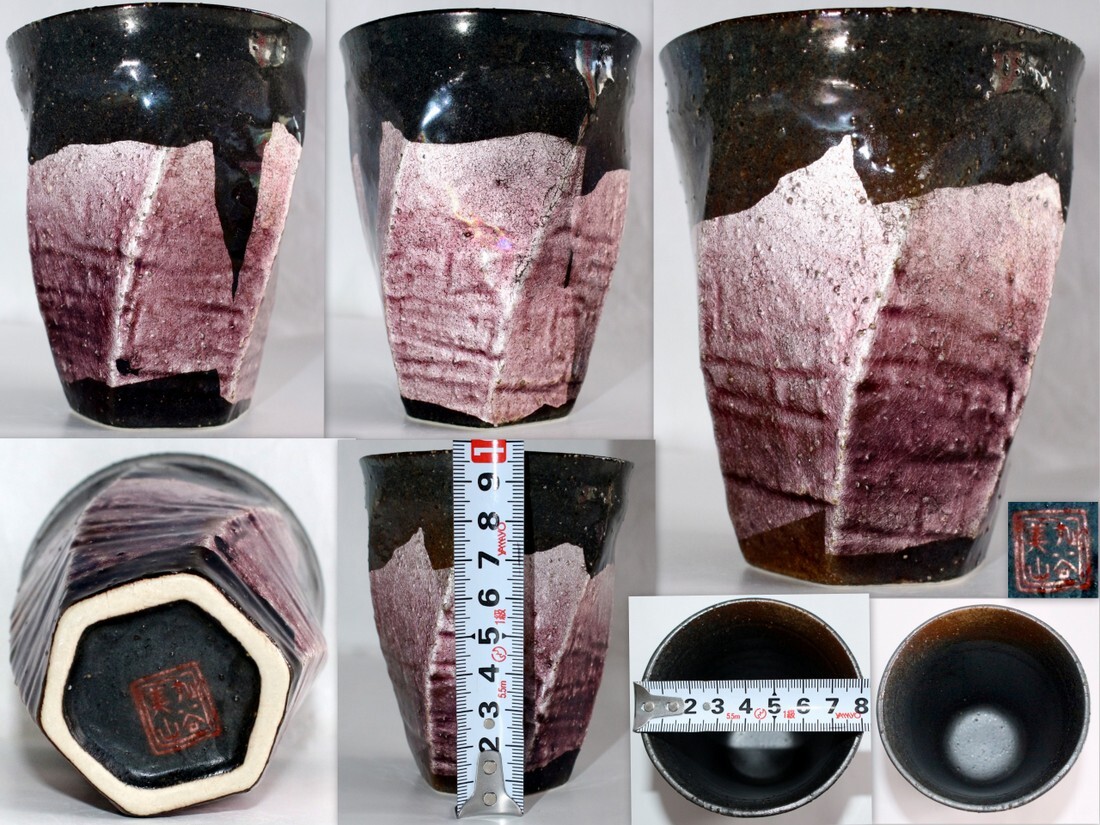 - 1497/中古・美品/九谷焼 九谷美山 銀彩 フリーカップ ※湯飲み 湯呑み 焼酎カップ ビールグラス 酒器 ピンク 紫