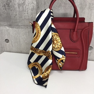 - 新品 送料無料 正方形 ミニスカーフ ネイビー バッグスカーフ プチスカーフ バッグチャーム ヘアリボン マリン柄 母の日