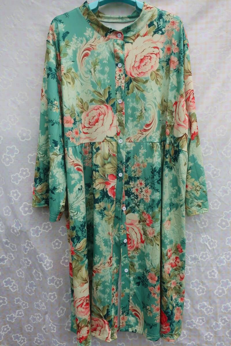 - シャツワンピース 前ボタン ボタニカル 植物柄