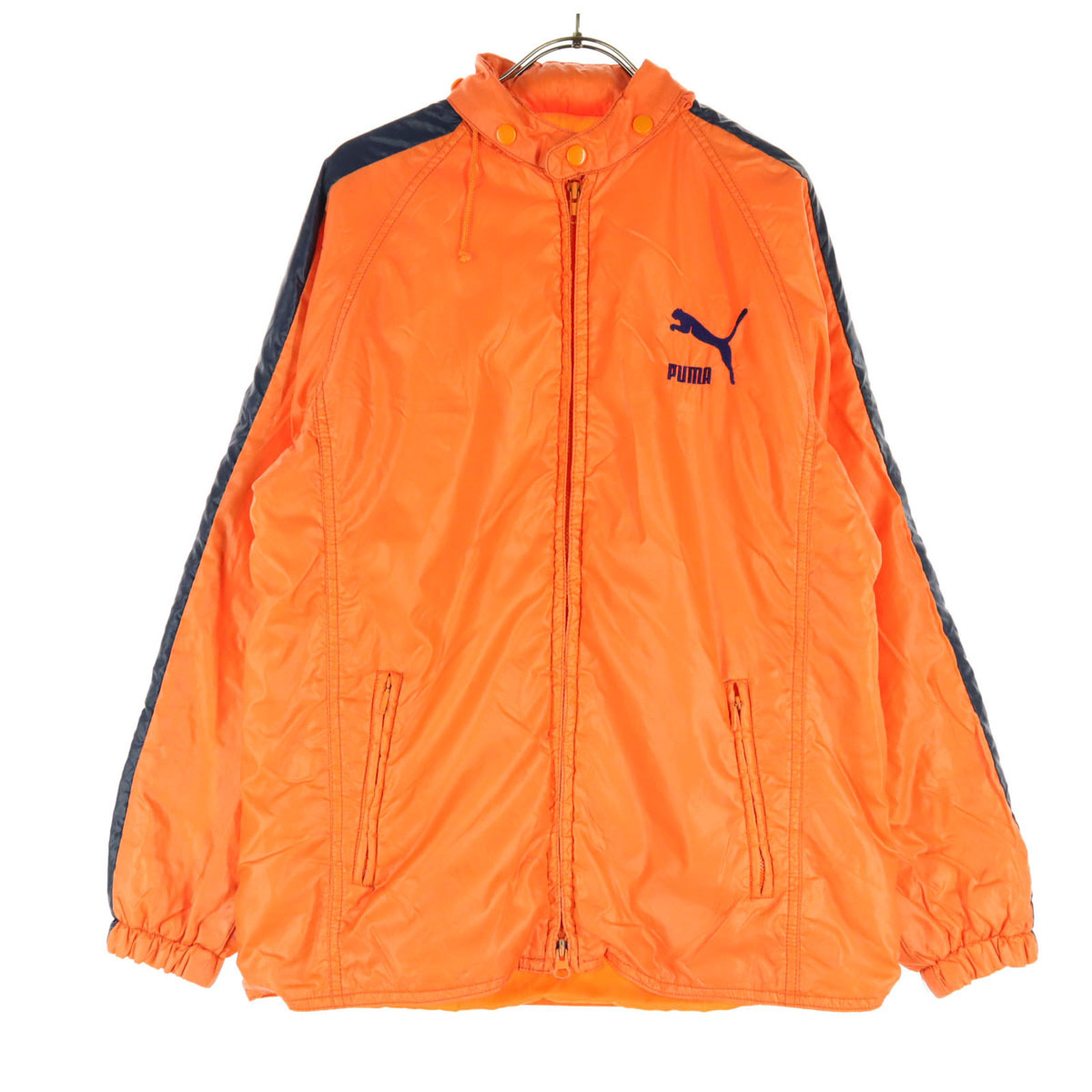 PUMA プーマ 80s ヴィンテージ ロゴ刺繍 長袖 フード収納 ウインドブレーカー L オレンジ メンズ