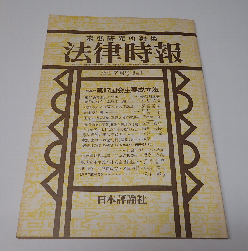 ●「法律時報 第622号 昭和54年51巻8号 1979年7月号 第87国会主要成立法」 末弘研究所編集 日本評論社拍卖