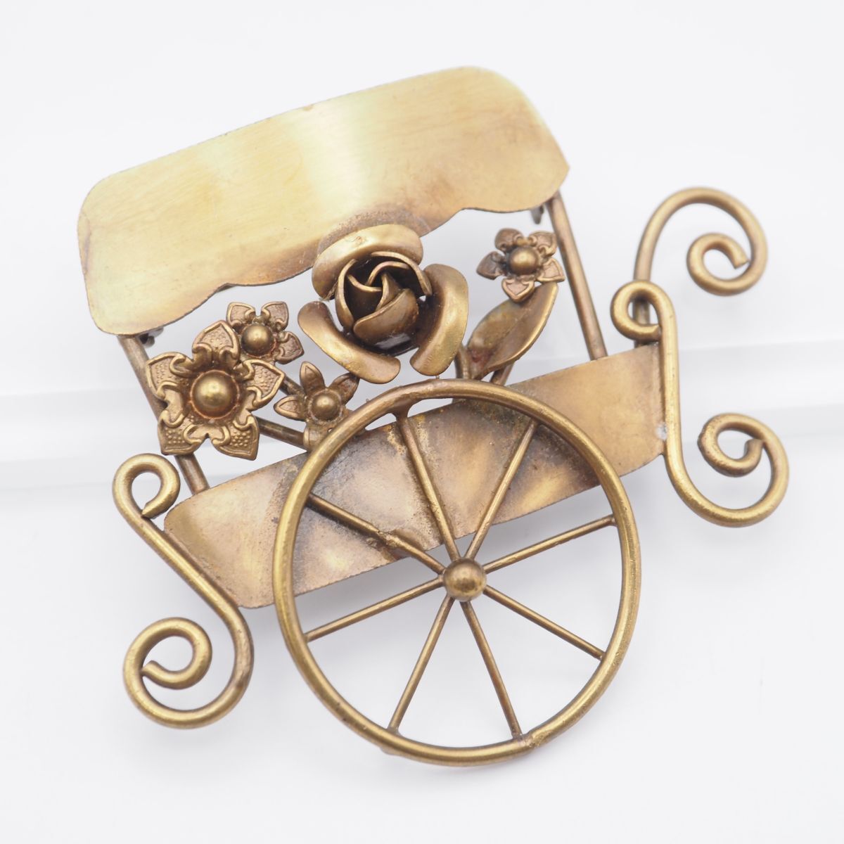 - G179 ブローチ フラワー ワゴン ゴールド デザイン コスチュームジュエリー