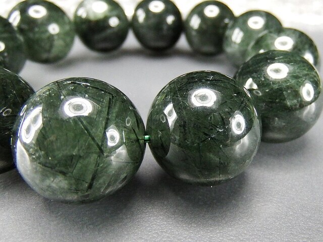 - 逸品超大天然石グリーンルチルクォーツ超大玉約20mm数珠ブレスレットプライム