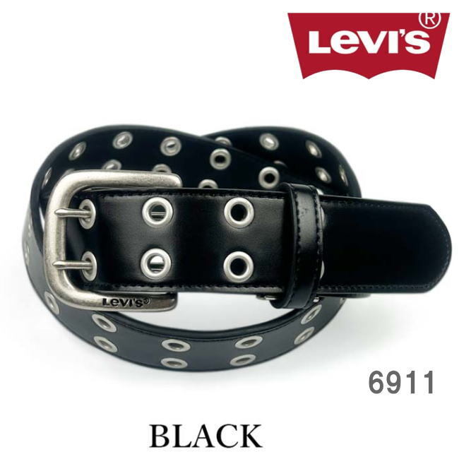 - ブラック リーバイス 6911 ダブルピン ベルト 合皮 幅4 メンズ レディース
