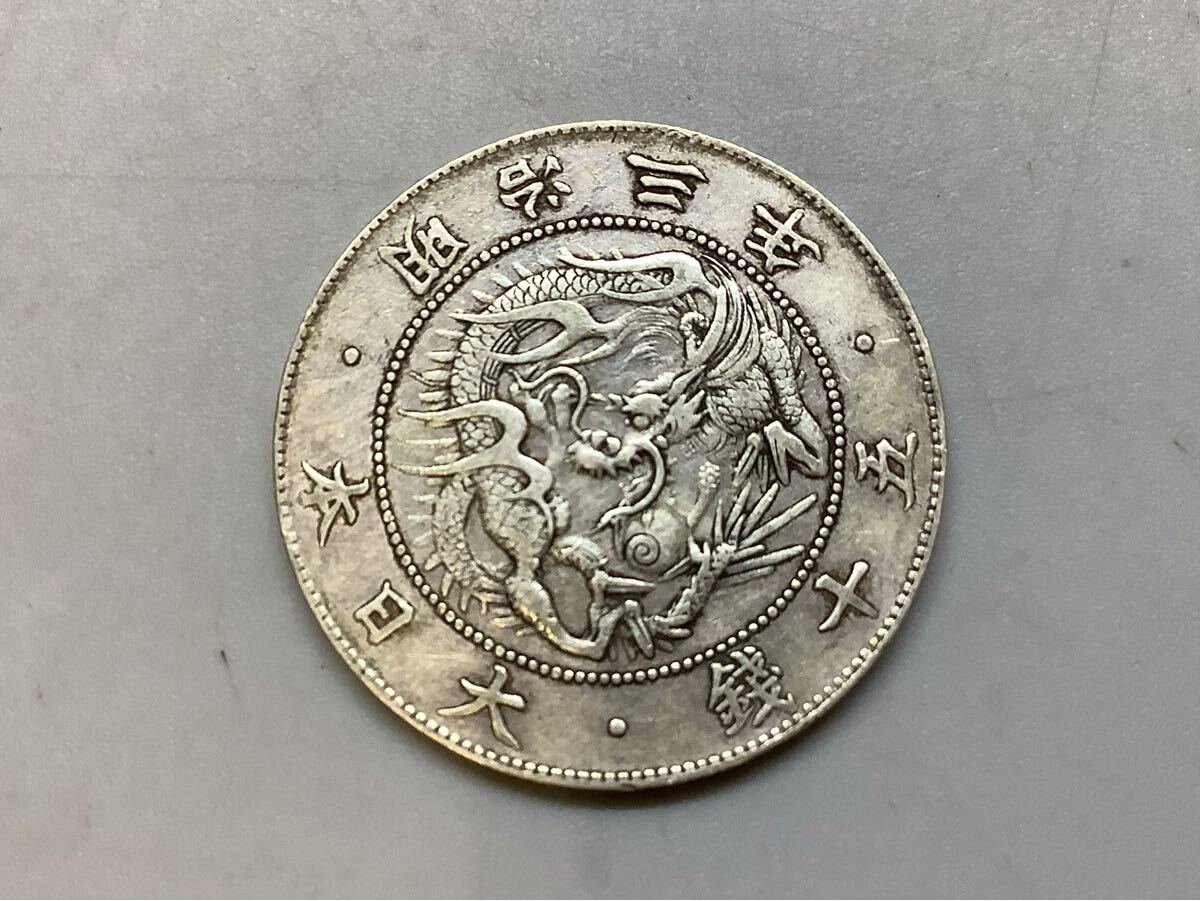 > N13 旭日竜大型50銭銀貨 特年 明治3年 五十銭 硬貨 50銭 大日本 明治三年 古銭 旭 竜 旧貨幣 日本硬貨 銀貨