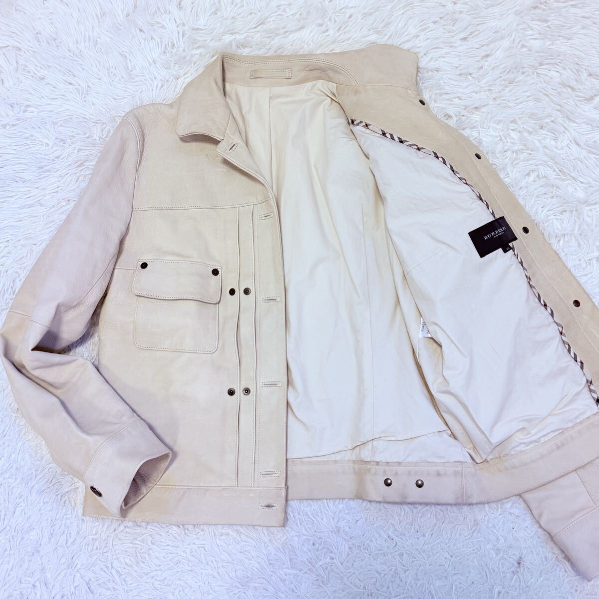 - BURBERRY LONDON レザージャケット アイボリー 牛革 革ジャン レディース M