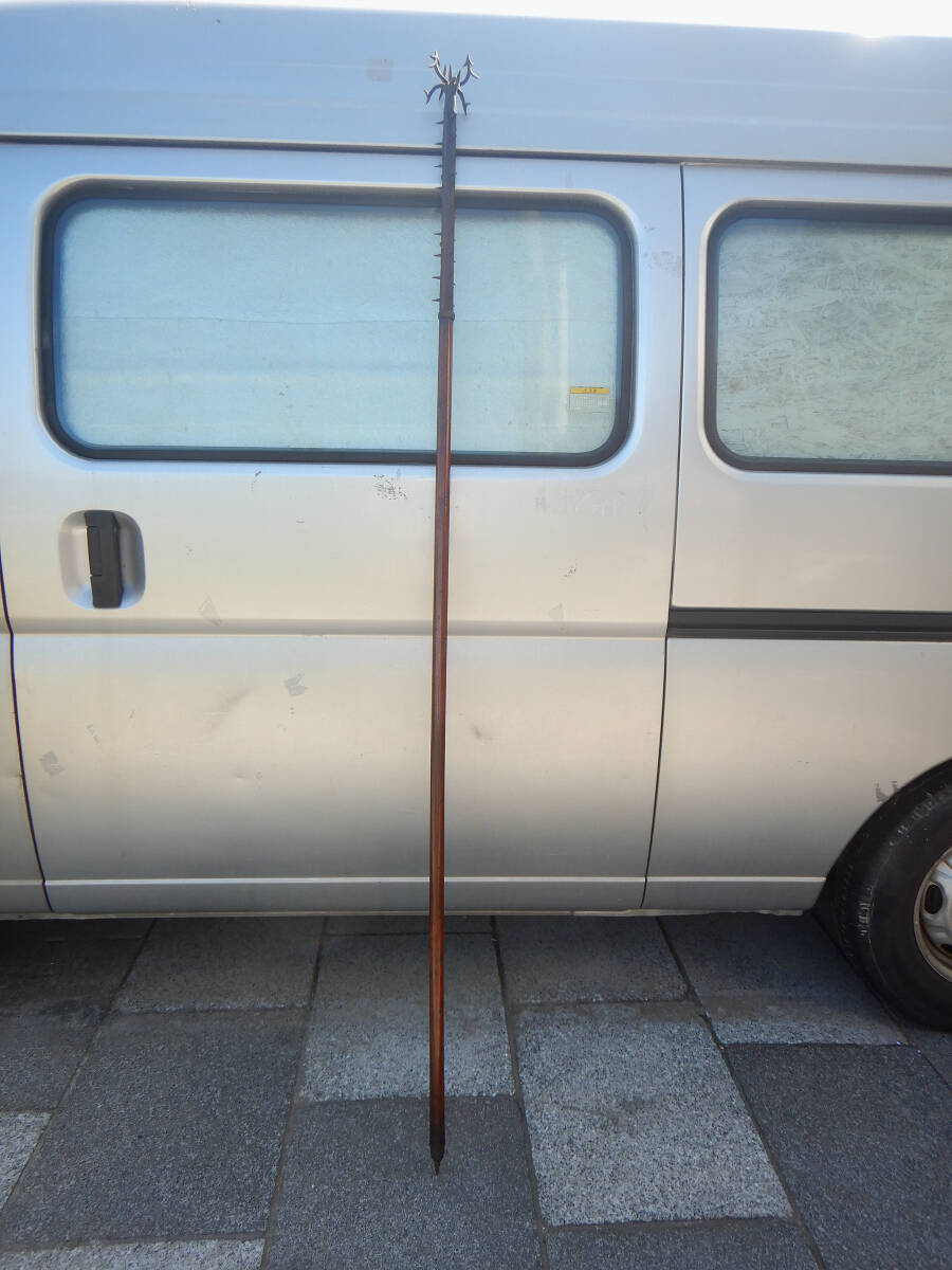 - 時代武具 袖がらみ 袖搦み 袖絡み 柄は樫材 石突 捕り物道具 武具 やり 槍 全長約208cm 火消 江戸時代 長柄 捕物道具 奉行所 時代物