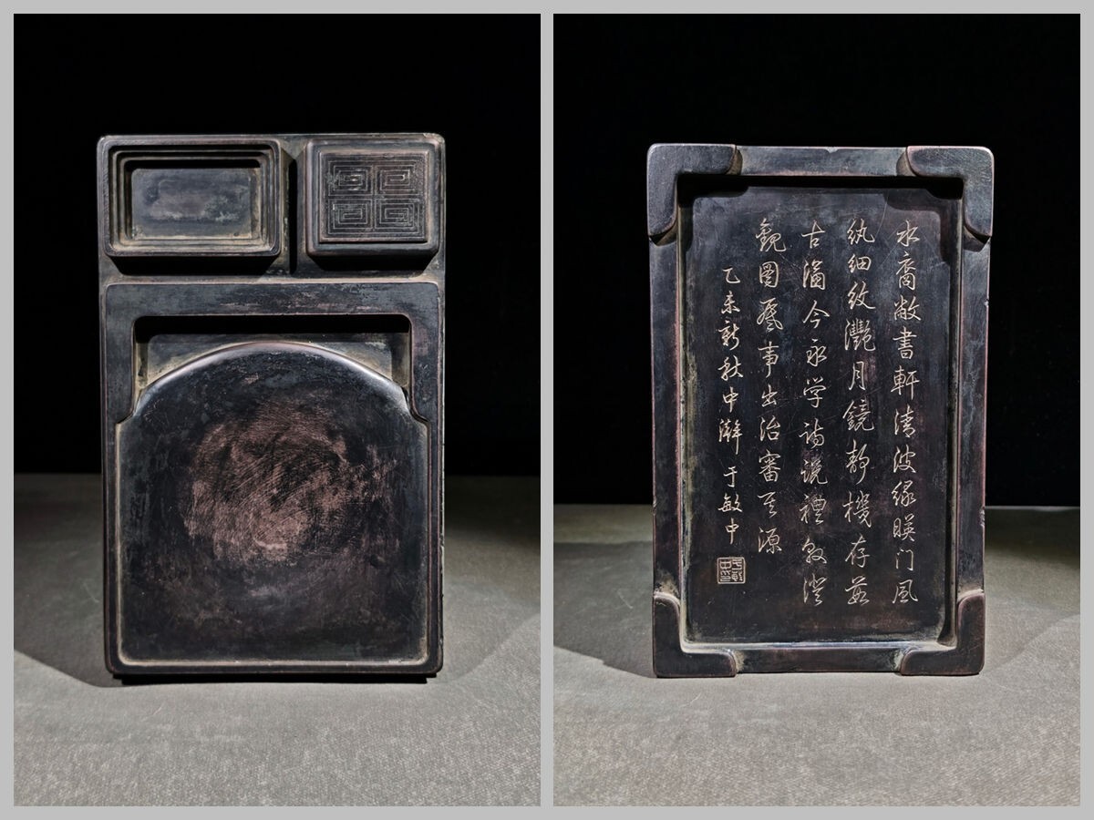- 古びた蔵『清代 端石彫り 詩文文房端渓硯 于敏中銘』極細工 文房具 書道具 古賞物 中国古美術
