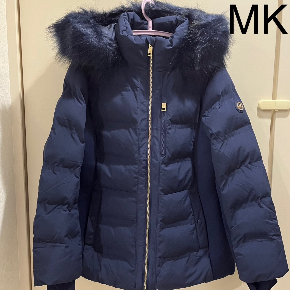 > マイケルコース MK 新品 ブランド ファー ロゴ フード ダウンジャケット ダウンコート アウター レディース 防寒 2way 撥水 防風 ネイビー
