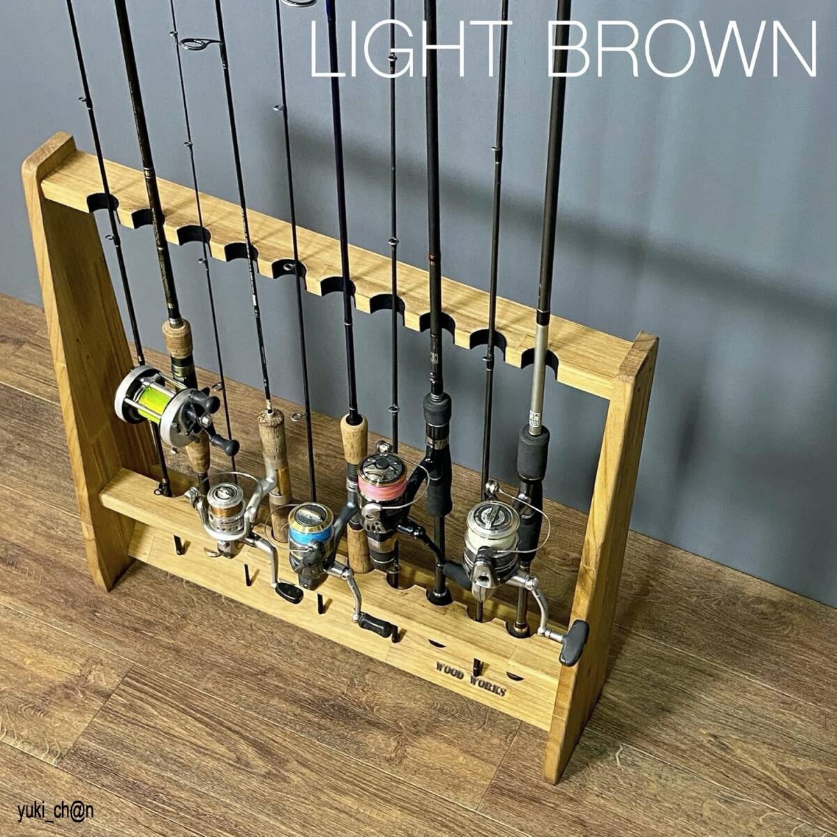 - ロッドスタンド 片面10本用 日本製 本体:ライトブラウン フェルト:ブラック 幅626mm 高590mm 奥140mm