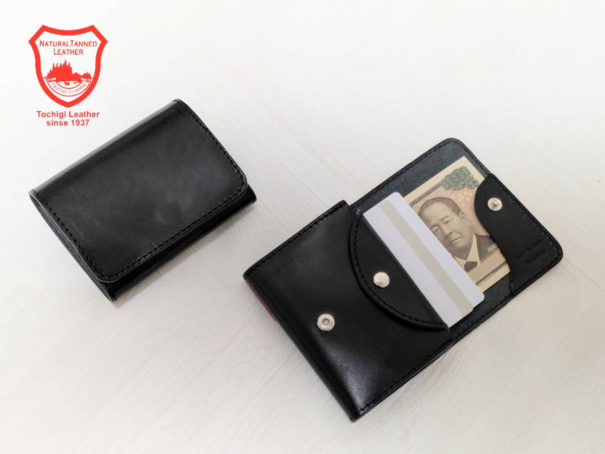 - BOXなし 栃木レザー 二つ折り財布 コンパクト財布 ミニ財布 小さい財布 ブラック 誕生日 記念日 プレゼント キャッシュレス