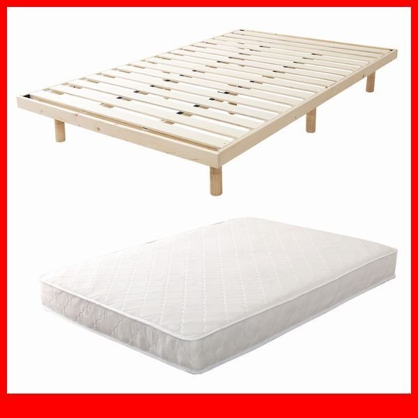 - すのこベッド★ポケットコイルマットレス付 3段階高さ調節 脚付きすのこベッド/セミダブル/コンセント付 北欧パイン材/ナチュラル/a3