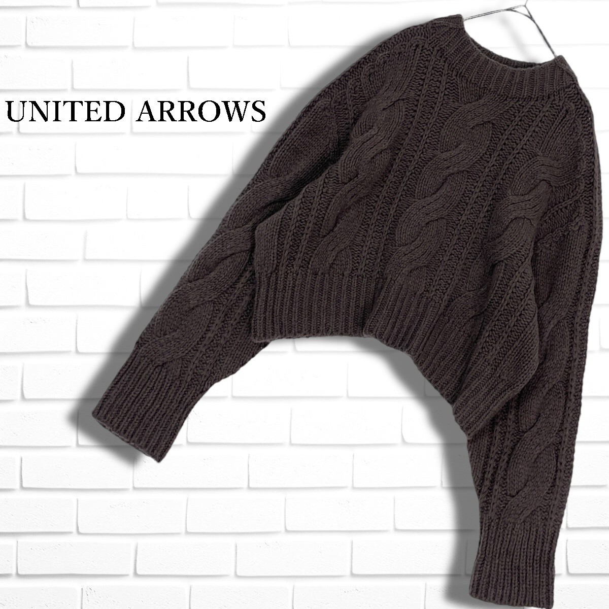 - ◆美品◆ UNITED ARROWS ユナイテッドアローズ ウール 100% ニット ケーブル編み 長袖 セーター 茶 ブラウン レディース F 日本製 0805J◇
