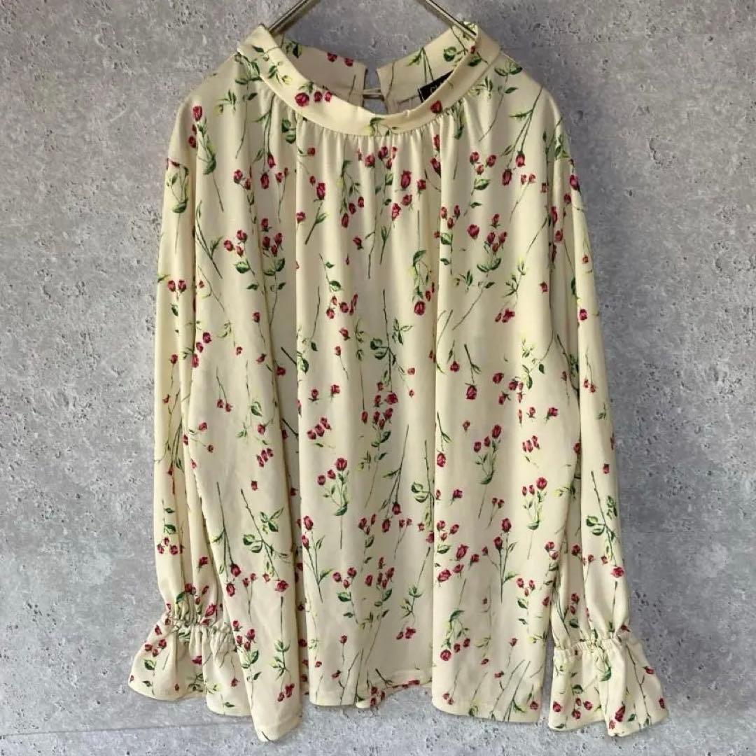 - CLASSA(L)総柄ブラウス*バラ柄*フレアカフス*モックネック*昭和レトロ