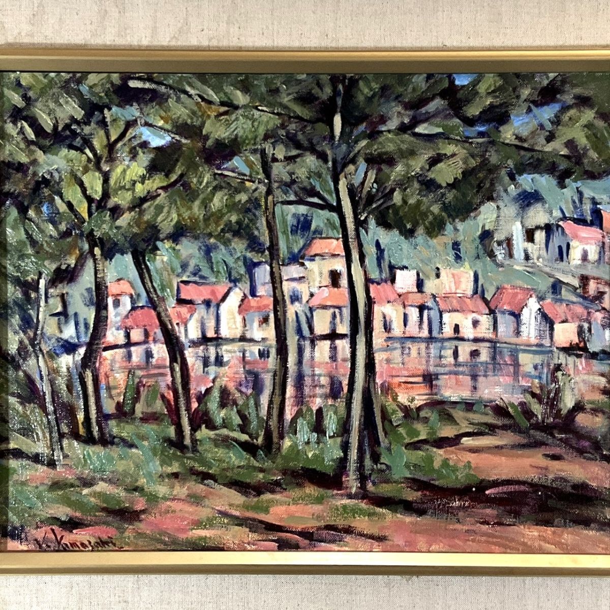真作■油彩■ヴィンセンシオ山崎■『シャトー風景(セーヌ・エ・オアーズ)』■額付絵画 1c
