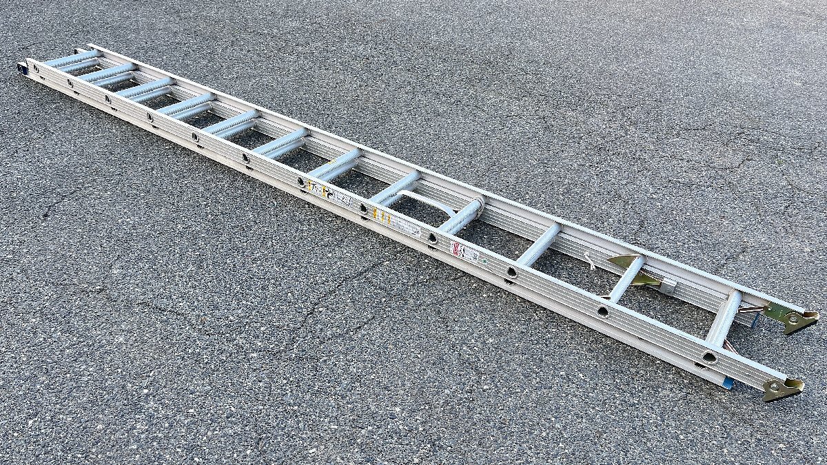 - 岡山より 発送不可★中古美品★HASEGAWA 長谷川工業 アルミ合金製伸縮形はしごD-10 HC2-71 4.16~7.18M 2連はしご 脚立 スライダー )倉a
