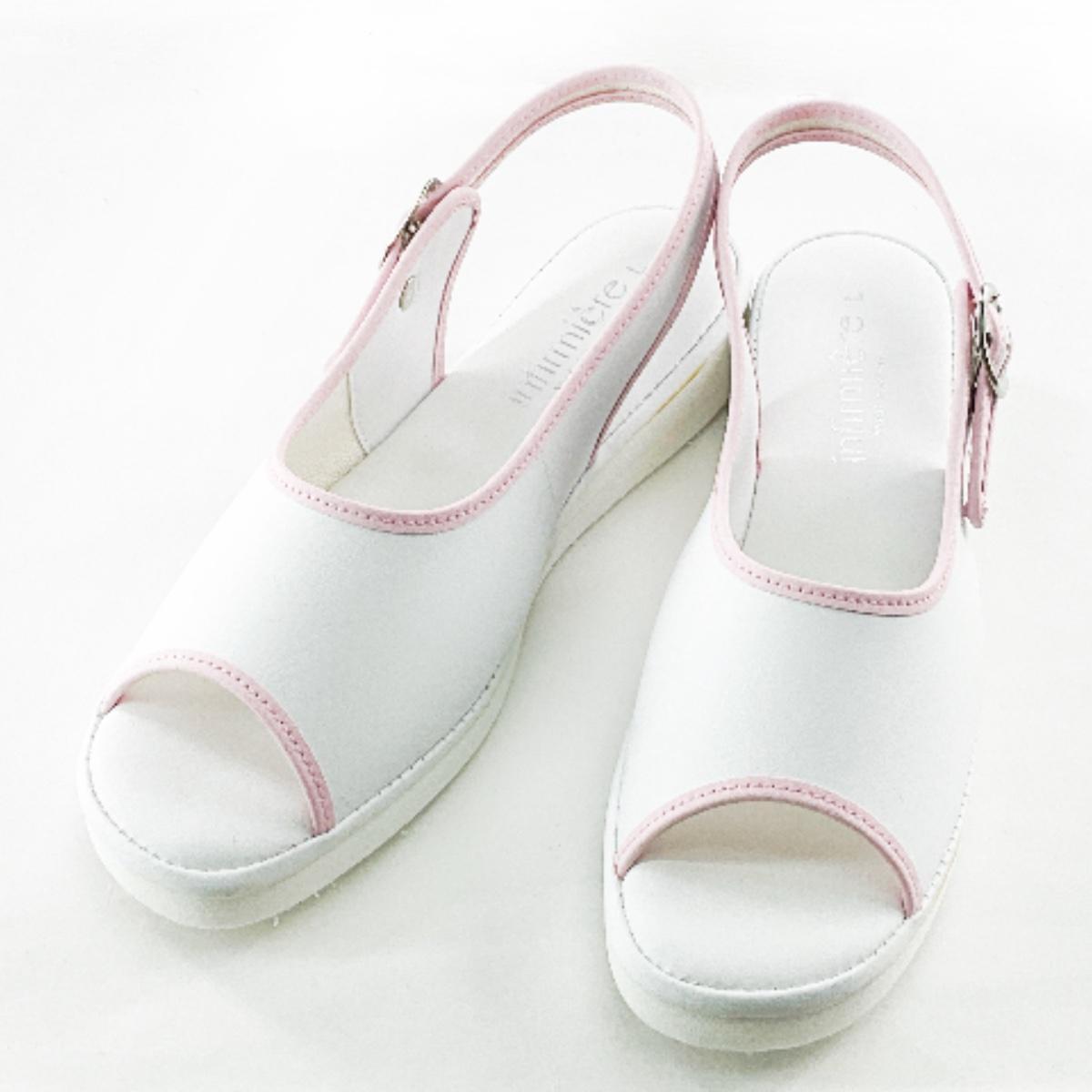 - パイピングサンダル クッションインソール バックストラップ付き 看護師 介護士 L 24.0~24.5cm ホワイトxピンク