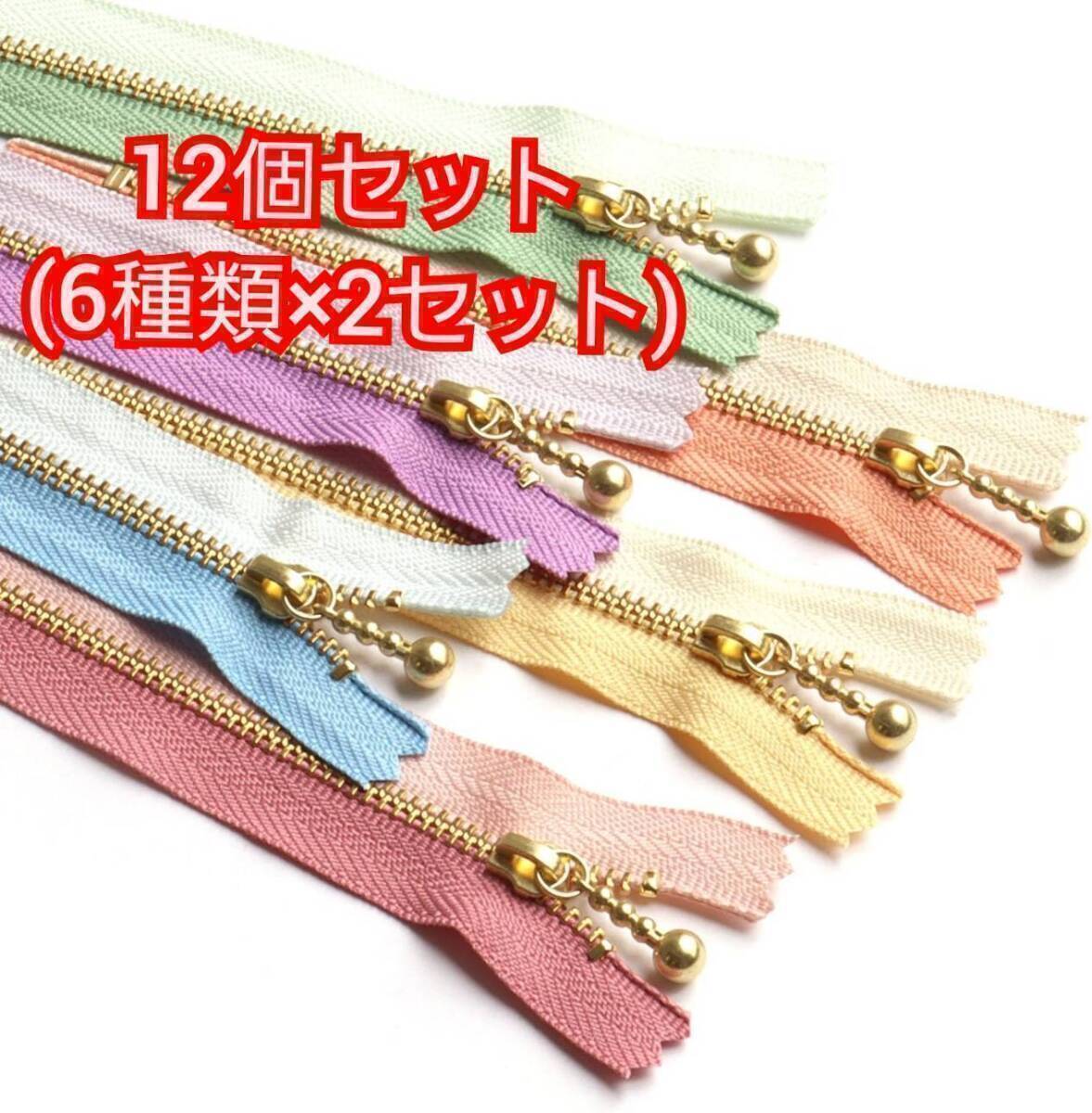 > 送料無料 Y.K.K 玉付きファスナー 12個セット(6種類×2セット) カラフル ファスナー コンビカラー 金具ゴールド 10cm 新品 未使用