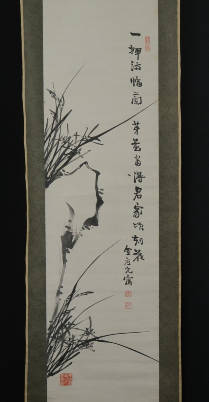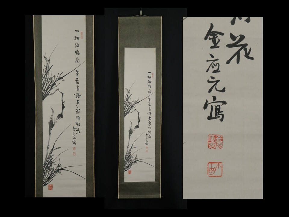 - 11135■【真作】金応元 蘭図 肉筆 朝鮮 李朝 韓国 掛軸