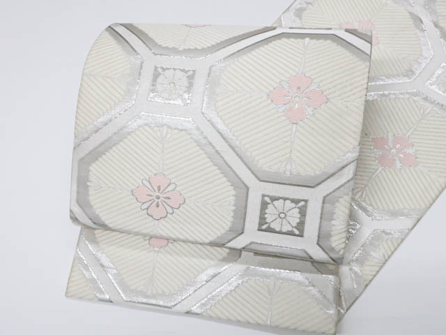 > 《京都一輝堂》リサイクル着物 袋帯 六通 銀糸 蜀江 正絹 25b08-1480
