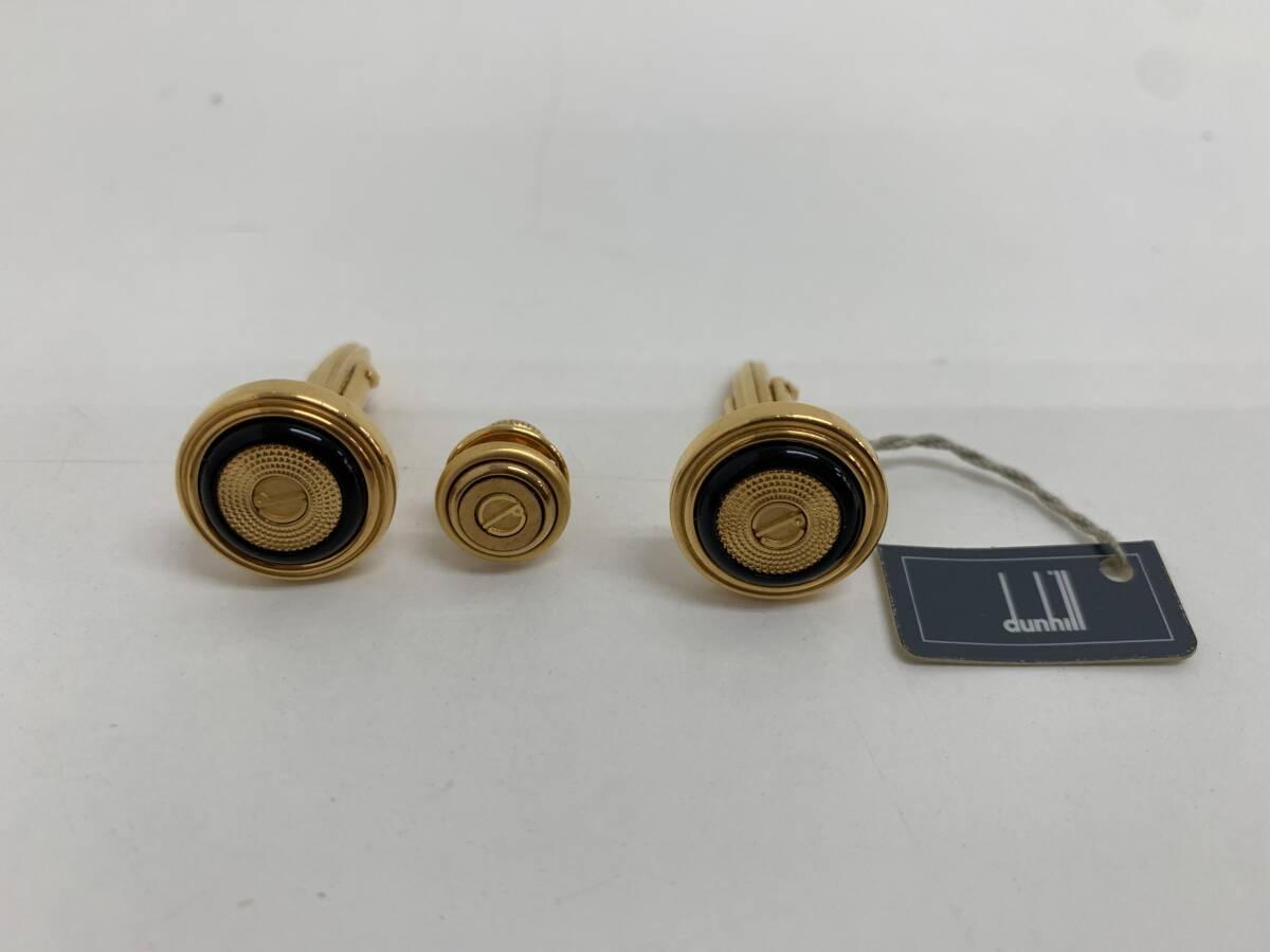 > 【美品】dunhill ダンヒル カフリンクス&スタッズ セット ゴールド×ブラック メンズ フォーマル タグ付 (管理:DO000042)