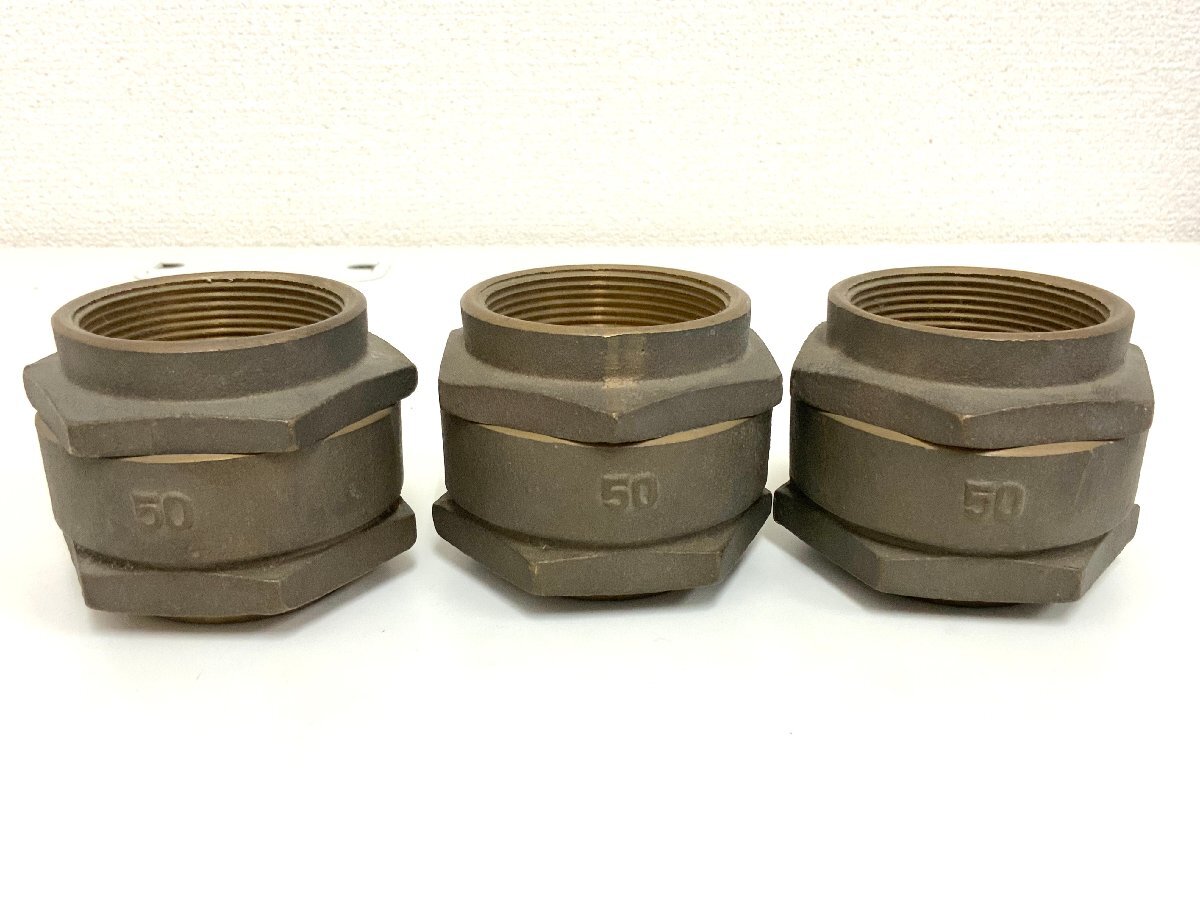 - 【金物屋在庫品】黄銅 ねじ込み継手 ユニオン 呼び50A 3個まとめ 画像参照にて /水道/パイプ/配管