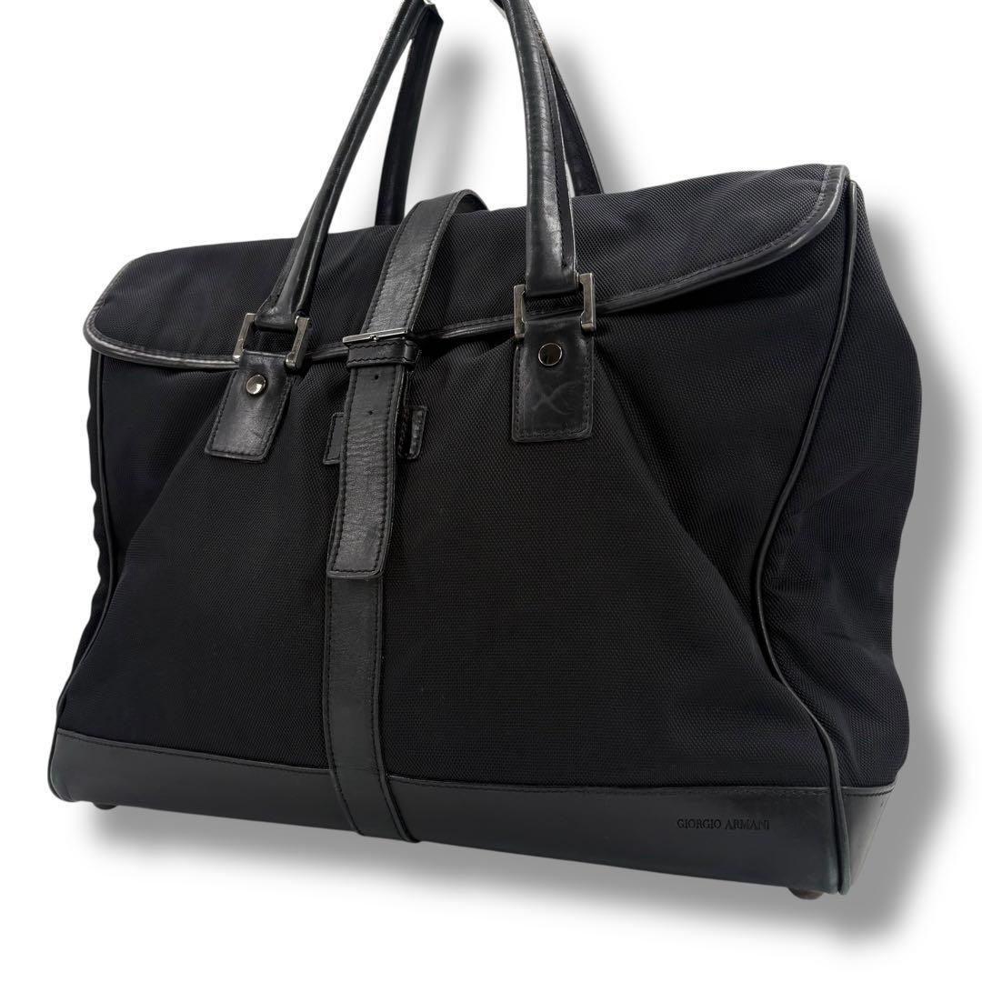 - Giorgio Armani Boston bag travel アルマーニ ジョルジオ 希少 ブラック 黒 ナイロン ボストン トート