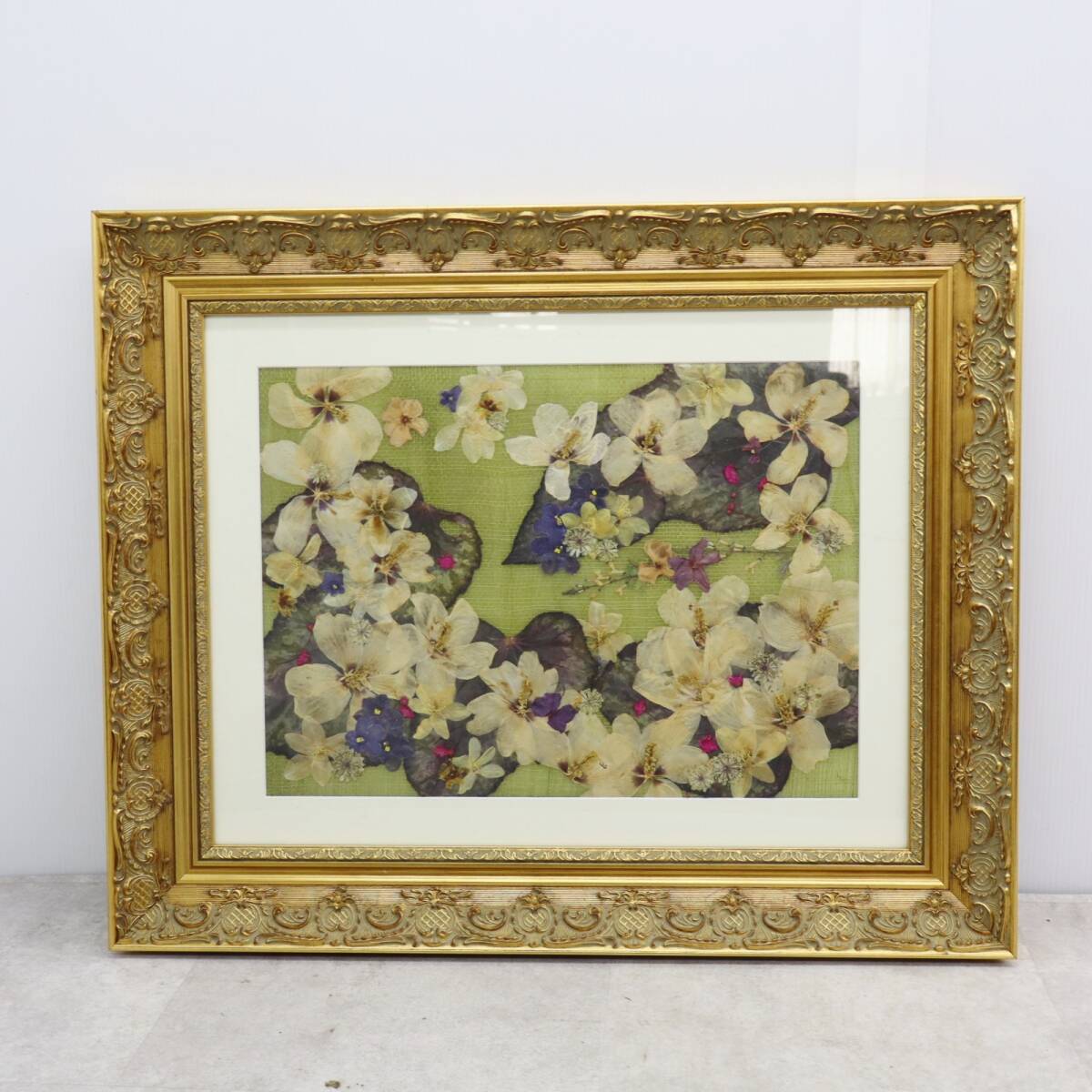 - ▽インテリアに!!! 約66×54×6cm|額入り 押し花 | アートフラワー 押花 ヴィンテージ ハンドクラフト 木製額 アクリル■P3353